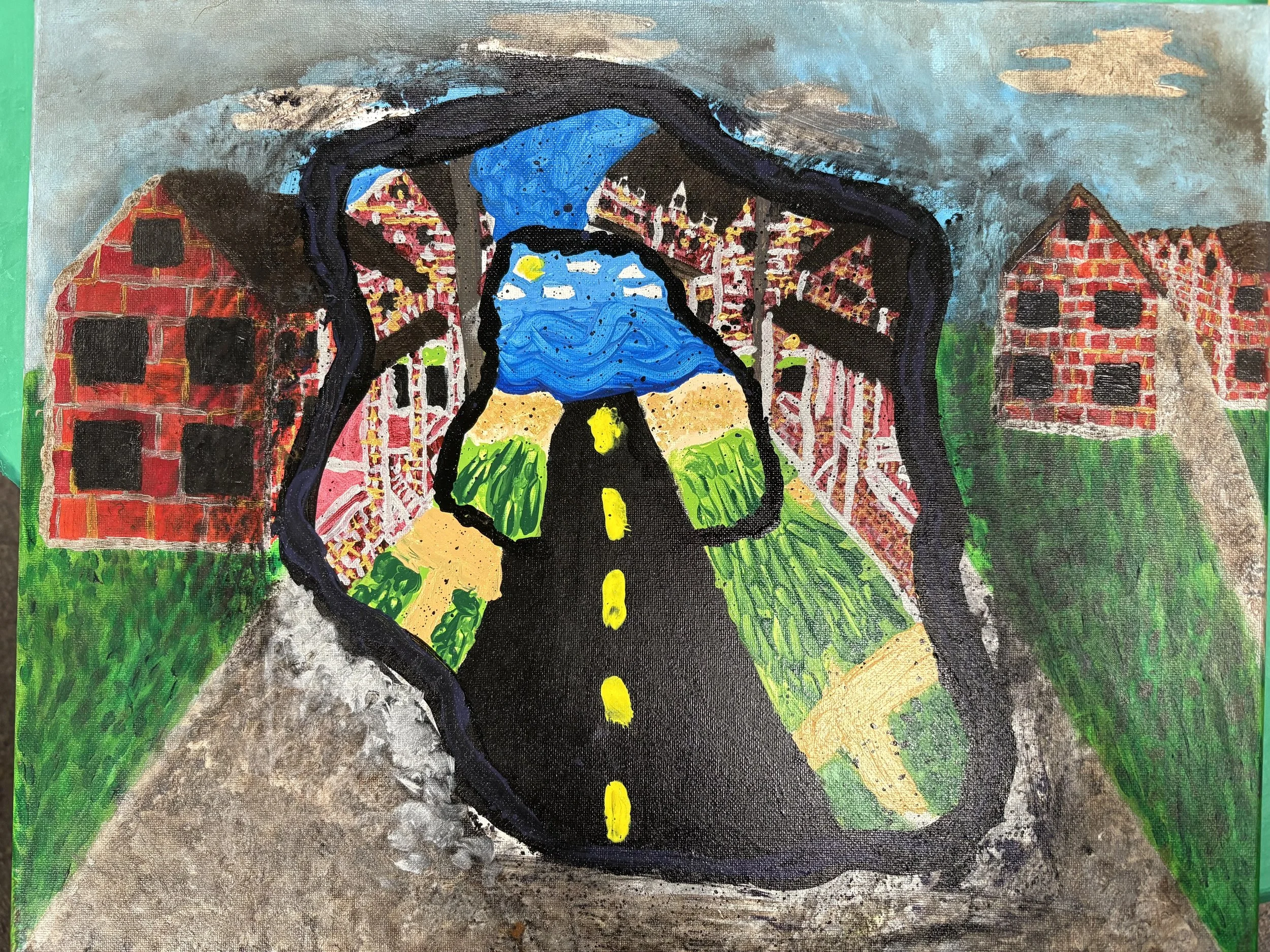 First, Roslin Homan, for Il Futuro. Based on the streaming series, “Stranger Things”, this 3D-like painting shows a past, present, and future gateway of Main Street.